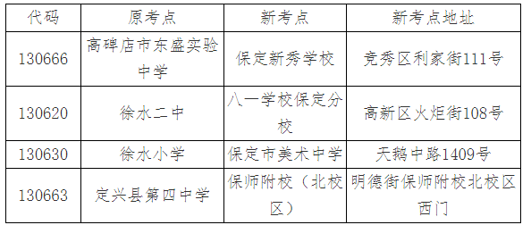 关于变更2022年下半年河北保定市中小学教师资格考试(笔试)考点的公告