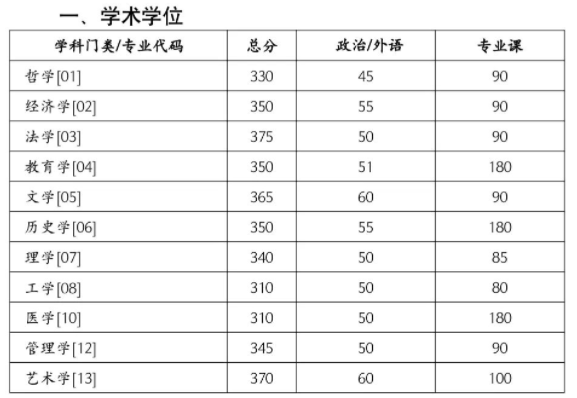 2018年全国硕士研究生招生考试考生进入复试的初试成绩基本要求(学术学位类)
