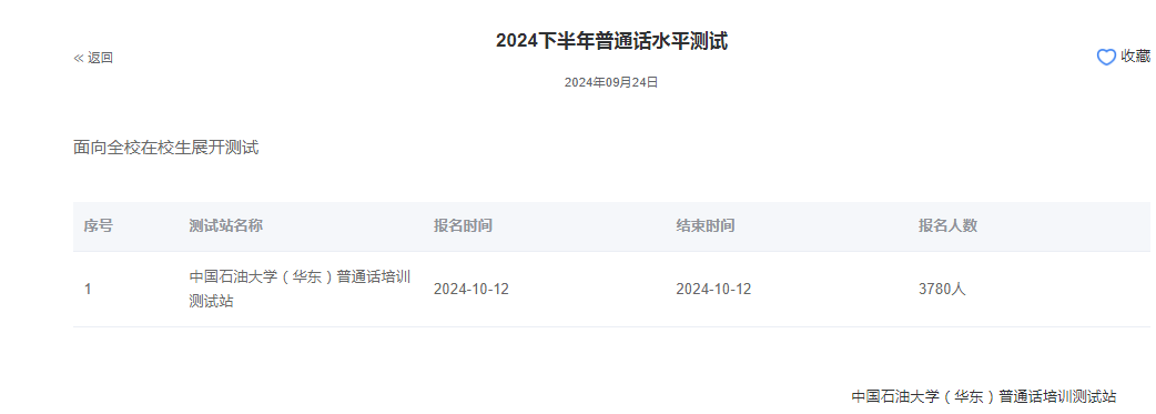 中国石油大学2024年普通话报名时间:2024年10月12日