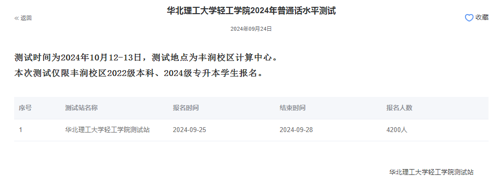 华北理工大学轻工学院2024年普通话报名时间:2024年9月25日