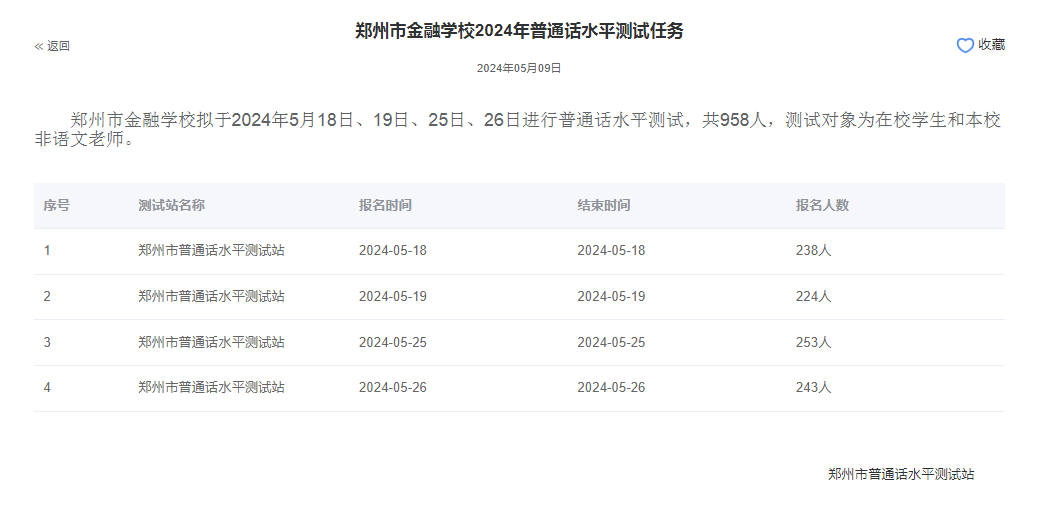 河南郑州市金融学校2024年6月普通话水平报名时间:5月18日-26日