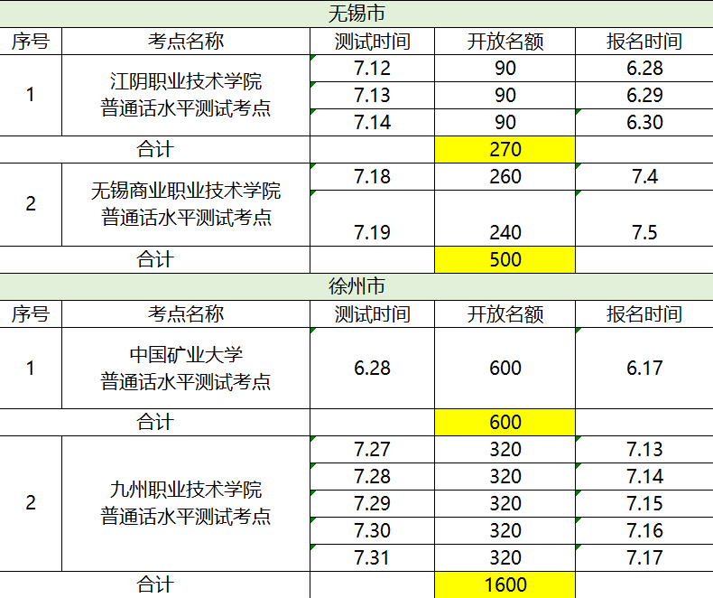 2020年7月无锡市部分考点社会人员普通话水平测试安排现将近期我省部分考点社会人员普通话水平测试计划公布如下(注:报名时间从当日上午9:00开始,报满为止)。其他考点社会人员测试计划将于7月中...2020-07-20