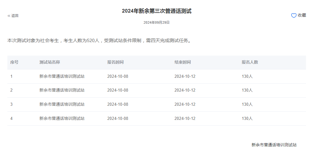 江西新余2024年普通话报名时间:2024年10月8日
