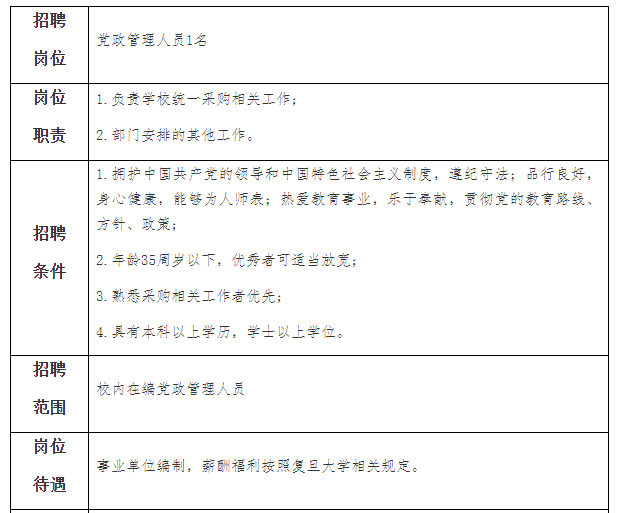 2022年上海复旦大学采购与招标管理中心招聘党政管理人员1名公告