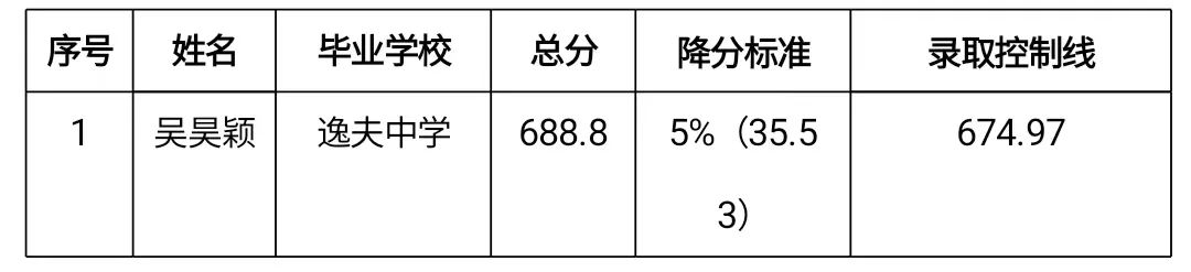 剩余15个指标,用于统招补录麦积考生,最低线为699.1分。
