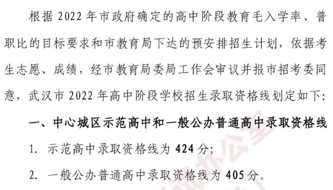 从武汉招考网得知,2022年湖北武汉中考录取分数线已公布。
