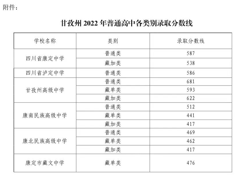 从甘孜州招考得知,2022年四川甘孜州普通高中学校各类别录取分数线已公布。