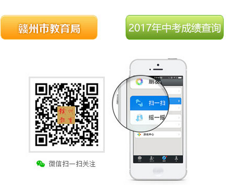 二是关注“赣州市教育局”微信公众号,进入中考查分菜单,输入准考证号(或报名序号)和身份证号后四位;