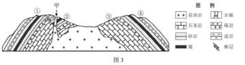 图3为某地的地质剖面示意图。读图,回答第5题。