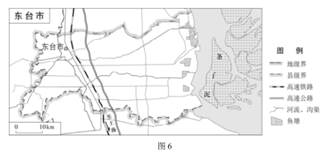 江苏省东台市近海分布着由泥沙沉积形成的沙洲。条子泥是其中一条巨型沙洲,地处中国第一个滨海湿地类世界自然遗产核心区。读图6,回答第10、11题。