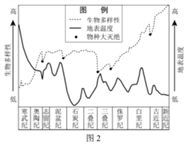图2示意寒武纪至新近纪生物多样性和地表温度的变化。读图,回答第4题。