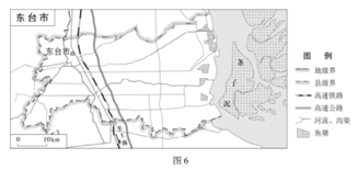 江苏省东台市近海分布着由泥沙沉积形成的沙洲。条子泥是其中一条巨型沙洲,地处中国第一个滨海湿地类世界自然遗产核心区。读图6,回答第10、11题。