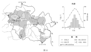 2021年10月三江源国家公园正式设立。图11为黄河源园区示意图。读图,回答下列问题。