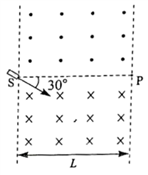 8.在如图所示的平面内,分界线SP将宽度为L的矩形区域分成两部分,一部分充满方向垂直于纸面向外的匀强磁场,另一部分充满方向垂直于纸面向里的匀强磁场,磁感应强度大小均为B,SP与磁场左右边界垂直。离子源从S处射入速度大小不同的正离子,离子入射方向与磁场方向垂直且与SP成30°角。已知离子比荷为k,不计重力。若离子从Р点射出,设出射方向与入射方向的夹角为θ,则离子的入射速度和对应θ角的可能组合为