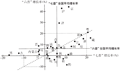 我国于2010年和2020年分别进行了第六次全国人口普查(“六普”)第七次全国人口普查(“七普”)。图6为“我国大陆31个省、自治区、直辖市‘六普’‘七普’,人口增长差异图”。据此回答16~18题。