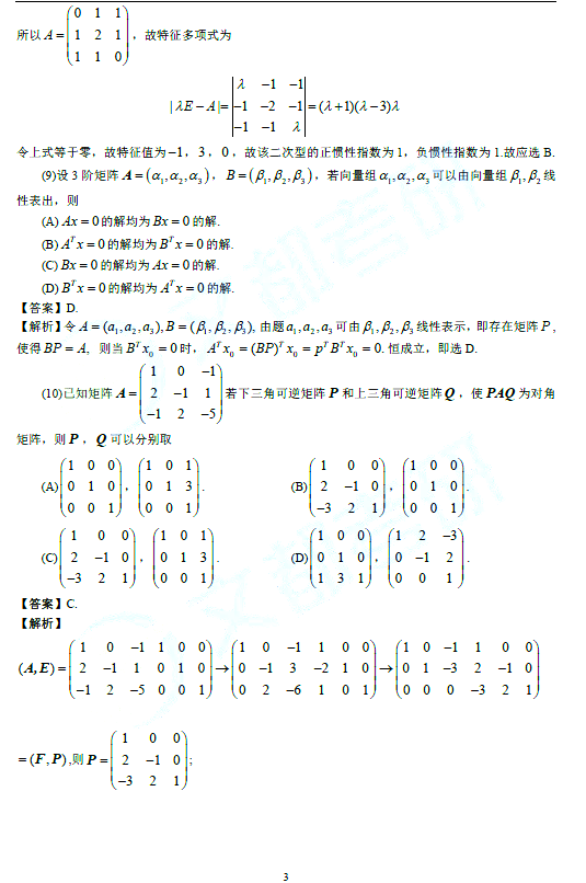 2021年考研数学三试题及答案