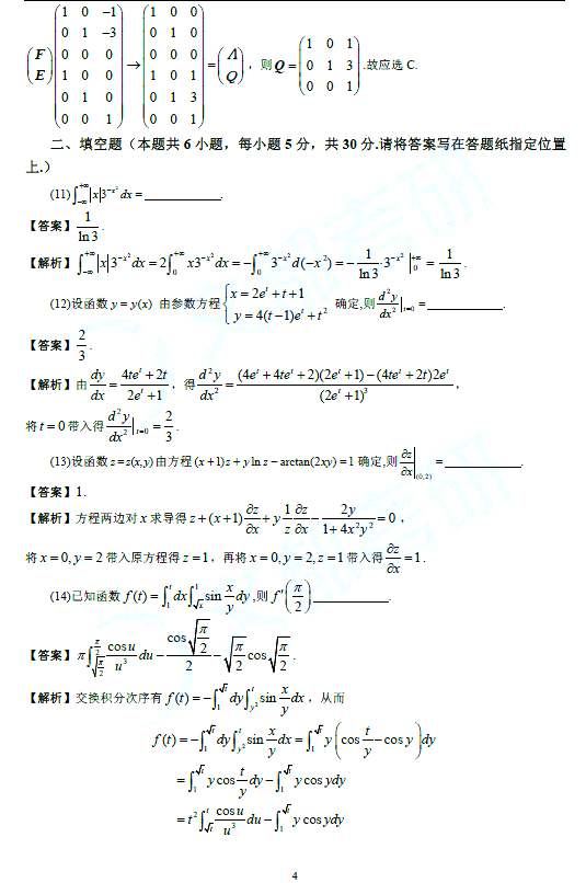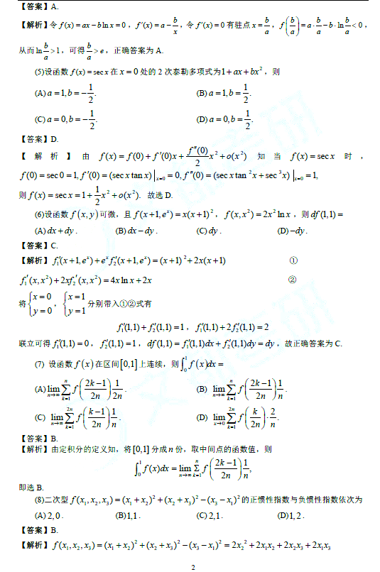2021年考研数学二试题及答案