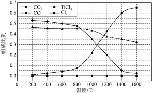 ①从图中可知,1400℃,体系中气体平衡组成比例CO2是0.05,TiCl4是0.35,CO是0.6,反应C(s)+CO2(g)=2CO(g)的平衡常数Kp(1400℃)=