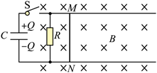 7. 如图,两根相互平行的光滑长直金属导轨固定在水平绝缘桌面上,在导轨的左端接入电容为C的电容器和阻值为R的电阻。质量为m、阻值也为R的导体棒MN静止于导轨上,与导轨垂直,且接触良好,导轨电阻忽略不计,整个系统处于方向竖直向下的匀强磁场中。开始时,电容器所带的电荷量为Q,合上开关S后,(  )