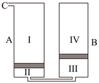 (2)将环境温度缓慢改变至,然后用气泵从开口C向汽缸内缓慢注入气体,求A汽缸中的活塞到达汽缸底部后,B汽缸内第Ⅳ部分气体的压强。