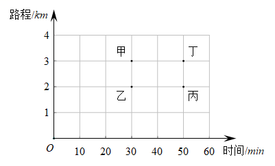 丙在所用时间为50分钟时,丁走的路程大于丙的走的路程,故丁的速度较快;