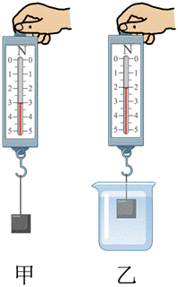 22. 小华采用如下方法测量一物块(不溶于水)的密度:弹簧测力计悬挂物块静止时的示数为F1=3.0N(如图甲所示); 将物块浸没在水中, 静止时弹墴测力计的示数为F2=2.0N(如图乙所示)。已知ρ水=1.0×103kg/m3,g取10N/kg,求 :