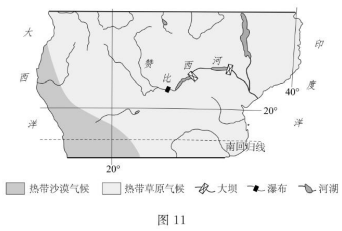 赞比西河是世界水能最丰富的河流之一。图11为非洲局部图。读图,完成23~25题。
