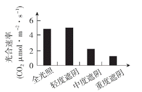 4. 香果树是我国特有的濒危珍稀植物,自然条件下成苗率低。为促进香果树繁育,科研人员研究不同遮阴程度对幼苗光合速率的影响,结果如图。下列相关叙述错误的是