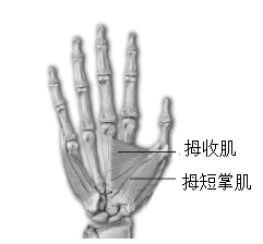 A. 拇短展肌两端附着在同一块骨上 B. 握住手时,拇收肌处于收缩状态