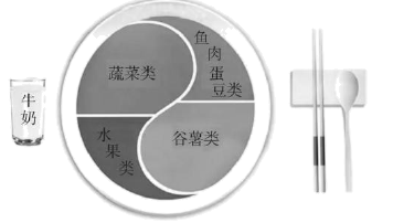 8. 《中国居民膳食指南(2022)》通过平衡膳食餐盘(如图)宣传平衡膳食的理念。下列相关叙述错误的是