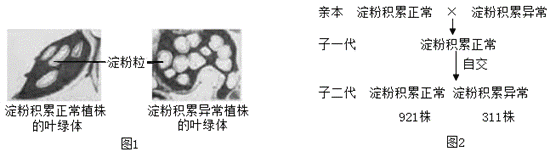 (3)淀粉积累正常与异常是一对_____。将淀粉积累正常与异常植株进行杂交,实验过程及结果如图2所示。据此判断,_____是隐性性状。若用B、b表示控制该性状的基因,子一代的基因组成是_________。
