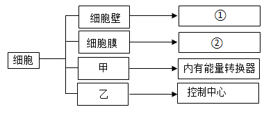 13. 如图是植物细胞结构和功能概念图,甲乙表示结构,①②表示功能,有关叙述不正确的是( )