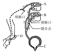 37. 我国外科专家侯春林首创“跟腱―脊髓中枢一膀胱”人工反射弧重建术,解决了脊髓损伤导致的膀胱功能障碍难题。具体做法是:分别剪断患者支配跟腱及膀胱的传出神经,然后将二者进行显微手术缝合,获得一个新的“跟腱―脊髓中枢―膀胱”完整反射弧,如图所示。患者通过敲击跟腱引起反射促使膀胱排尿。回答下列问题: