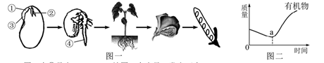 (3)图二曲线表示种子萌发过程中有机物质量变化,a点所示在相同时间内光合作用制造的有机物______(填>、=或<)呼吸作用分解的有机物。