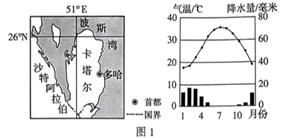 意图及多哈气候统计图。读图,完成1~3题。