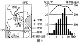 为中老铁路示意图及老挝琅勃拉邦气候统计图。阅读图文材料,回答下列问题。