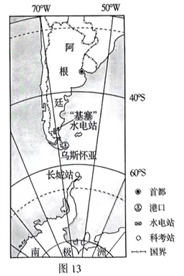等领域持续深入合作。图13为阿根廷及周边地区示意图。阅读图文材料,回答下列