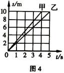 8.在某校举办的机器人模拟救援比赛中,甲、乙两机器人同时从同一地点出发,沿直线匀速运动到10m远的目的地,它们运动的路程随时间变化的图像如图4所示。下列说法正确的是