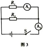5.在图3所示的电路中,电源电压不变,电阻R2的阻值为20Ω。闭合开关S,两电流表的示数分别为0.5A和0.2A,则电源电压为 V,电阻R1的阻值为 Ω。通电1min,该电路消耗的总电能为J。