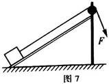 12.为了将一物块送到高处,小杰用木板和滑轮搭建了如图7所示的装置。用力F拉动绳端,物块沿斜面匀速向上运动,下列说法正确的是