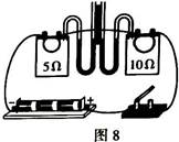 13.(双选)如图8所示,两个相同透明容器中密封着等量的空气。用该装置探究电流产生的热量与哪些因素有关时,下列说法正确的是