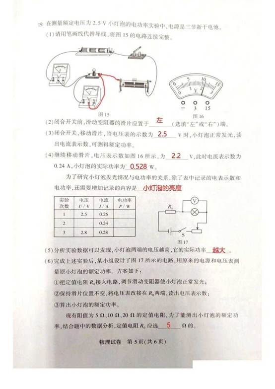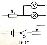 (6)完成上述实验后,某小组设计了图17所示的电路,用原来的电源和电压表测量原小灯泡的额定功率。方案如下: