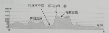 读某大陆沿30° N纬线地形剖面示意图,回答5、6题。