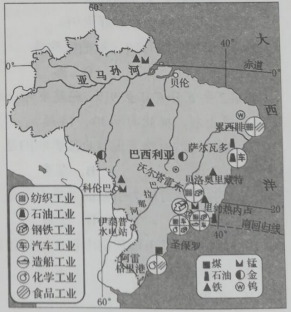 (3)里约热内卢依托锰、 _、 石油等矿产资源,发展了纺织工业、 工业、汽车工业和造船工业,工业较为发达。