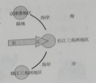 16.读长江三角洲地区的地理位置示意图。有人把此图比喻为“弓”和“箭”。下列关于“弓”“箭”“箭头”与地区的对应,正确的是( )