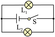 B.开关闭合后,电流从电源正极出来,在左侧交点处分为两条支路,一条经灯泡L1到达右侧交点,一条经灯泡L2到达右侧交点,然后汇合后经开关S回到负极,是并联,故B符合题意;