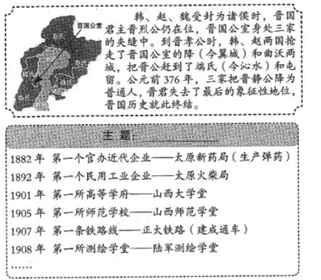 15.近代山西在发展中前行,传承中创新。从下面大事年表所列“第一”中,能提炼出最恰当的主题是( )