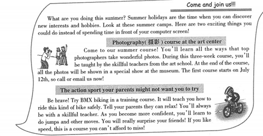Many people talk about connections between courage and fear. 45 If there is no fear,there is no need for courage. That is to say, courage is the ability to do what makes you feel afraid. Courage doesn't only mean great actions such as saving one's life or taking a big risk. 46 For example,we show courage when we raise our hand to answer a hard question during class or try a new sport.