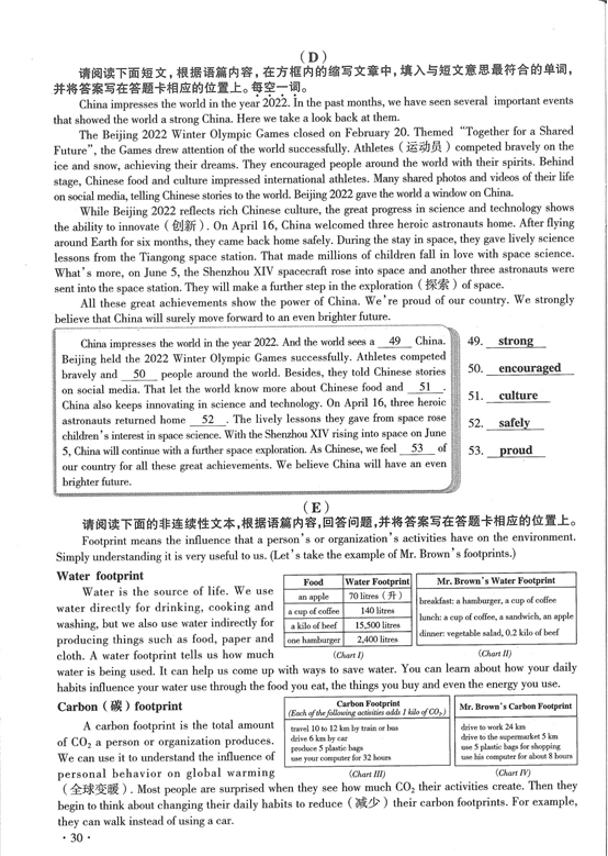 九、书面表达(共15分)请将短文写在答题卡相应的位置上。