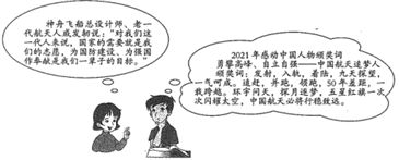 (3)从神舟五号到神舟十三号,从戚发轫到翟志刚、王亚平、叶光富等,中国航天事业飞速发展,中国航天精神代代传承。成果汇报会接近尾声,请你围绕“致敬航天英雄·奔向星辰大海”这一主题发言,表达对以神舟十三号航天员为代表的中国航天人的敬意,体现新时代青年人的使命担当。(8分)